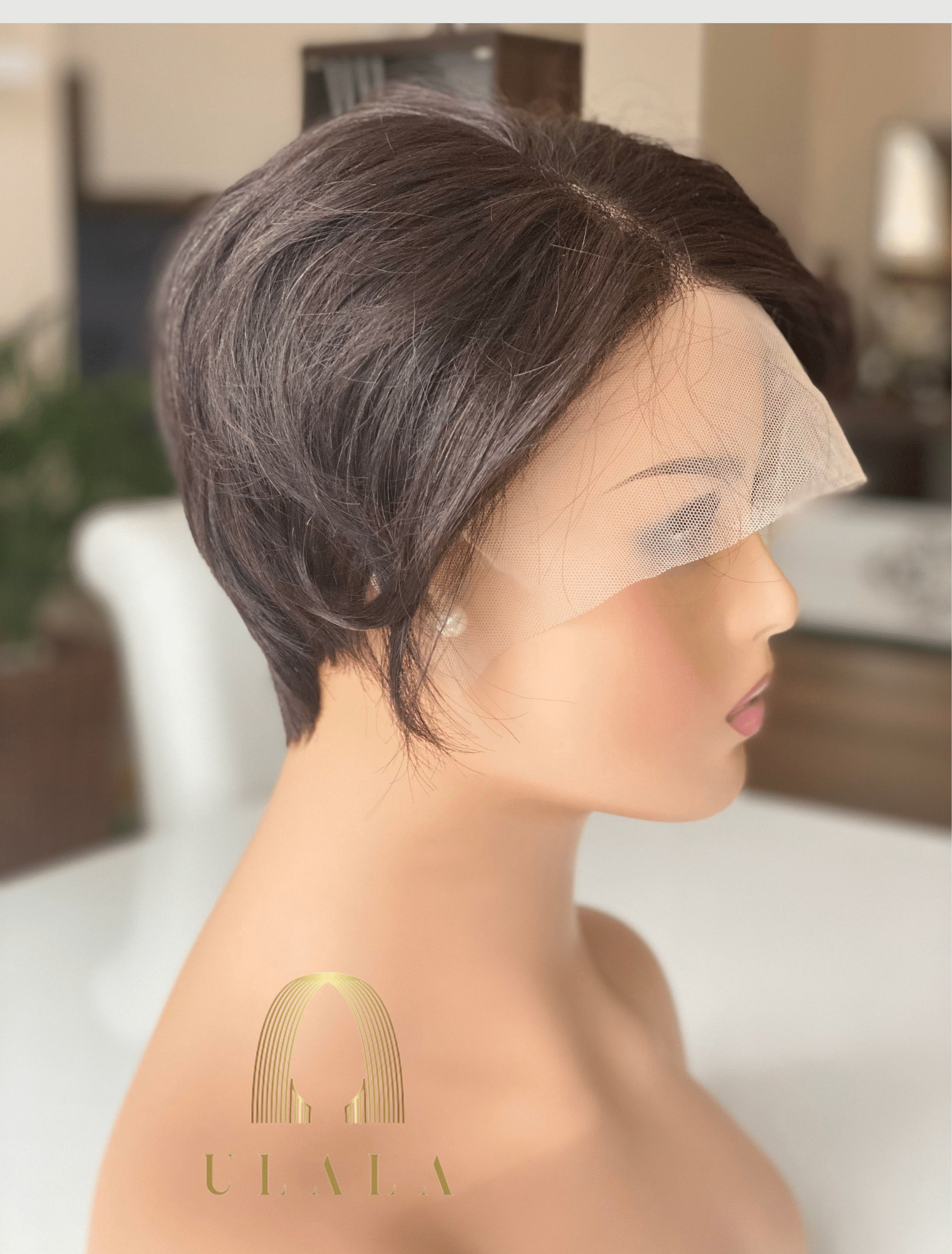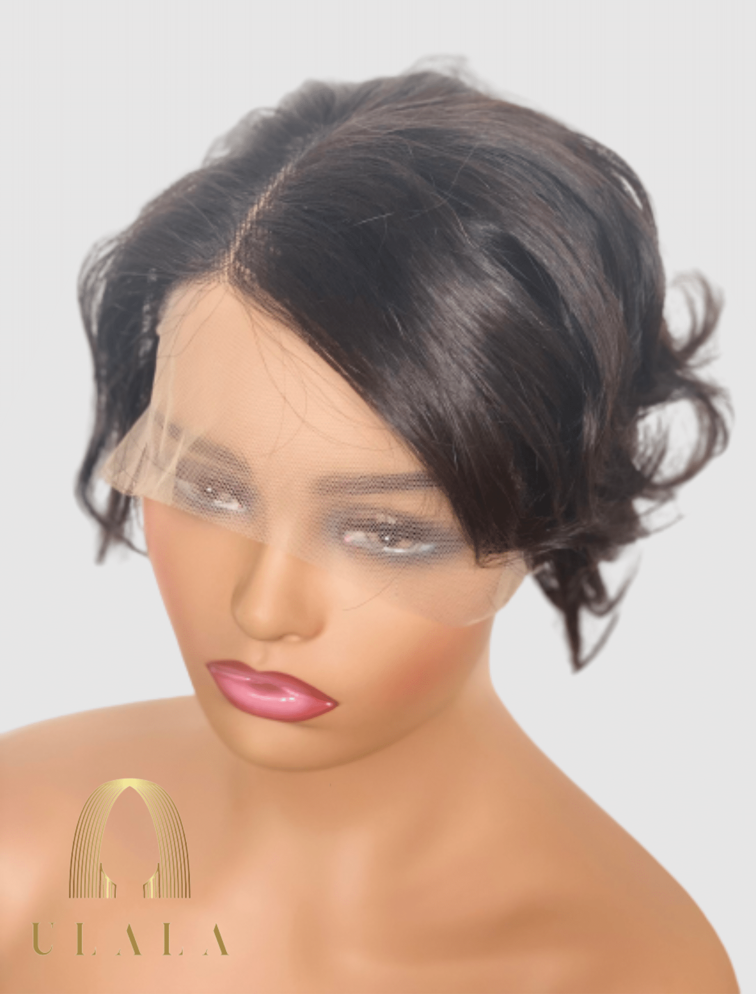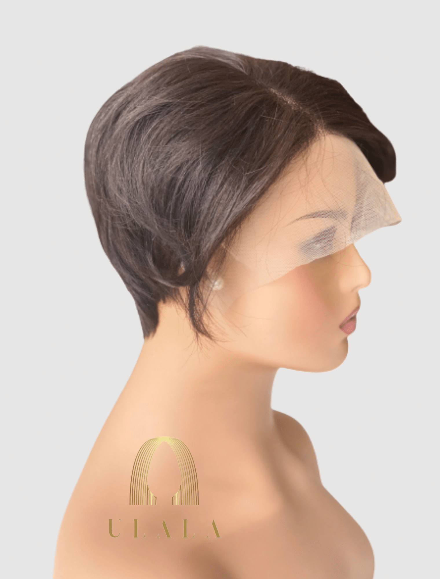 - Választék: Fültől fülig a homlokot elválasztó hajvonal hálós kialakítású (ezért olyan, mintha a hajszálak valóban a fejbőrből nőttek volna ki). Az oldalválaszték mentén szintén hálós kialakítás. A választék nem variálható.