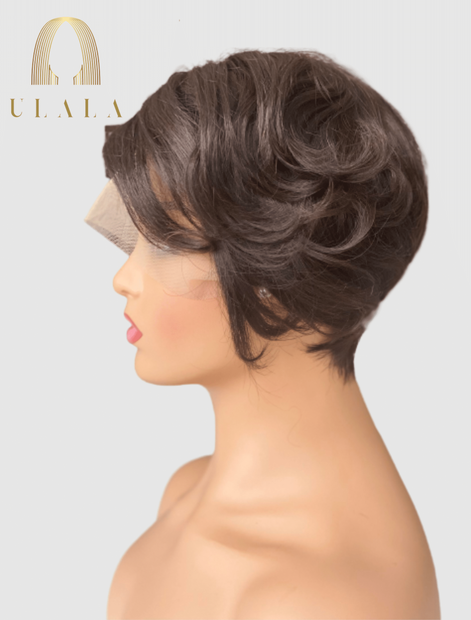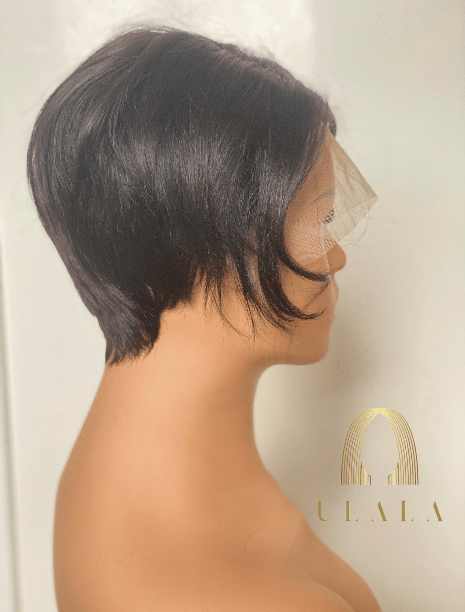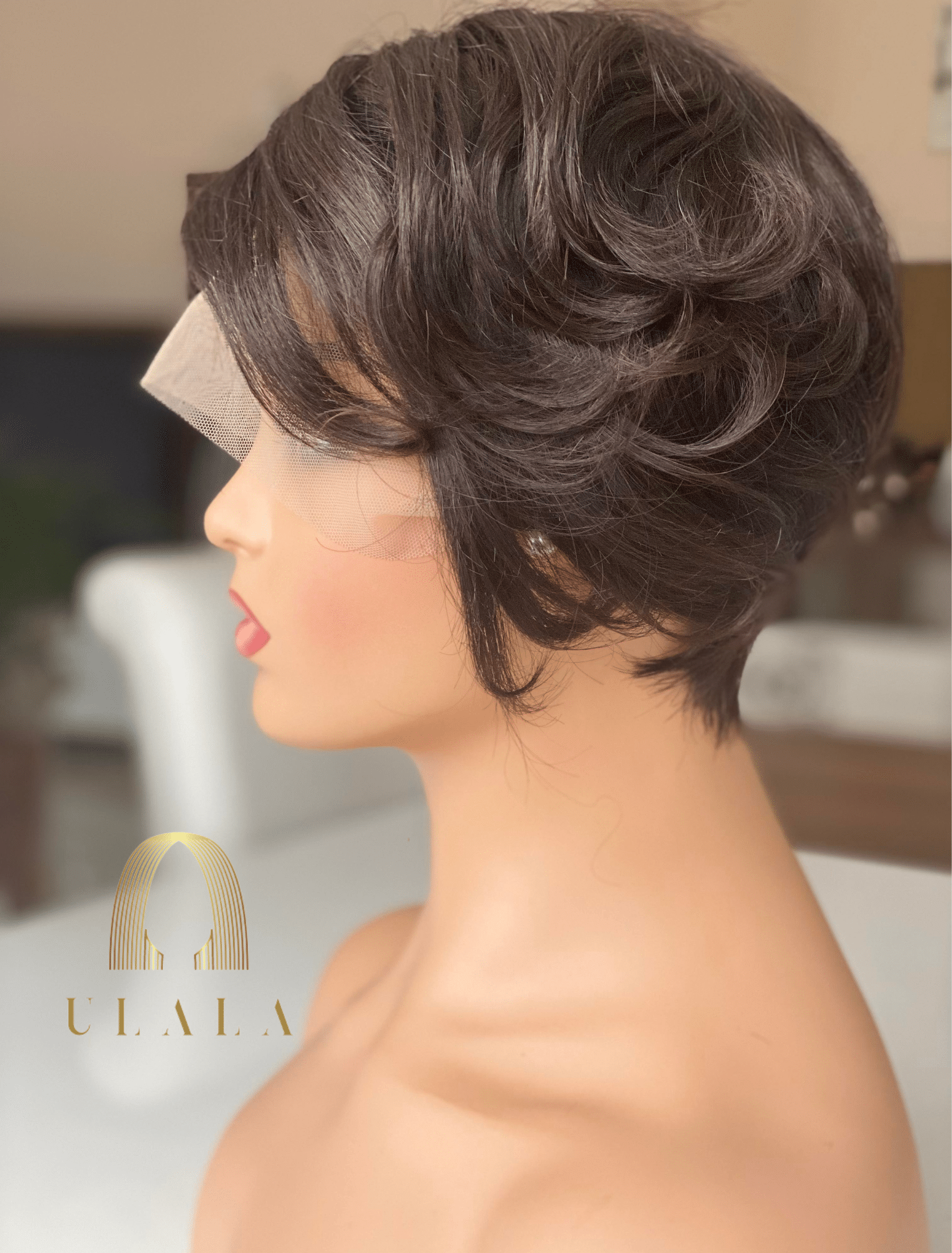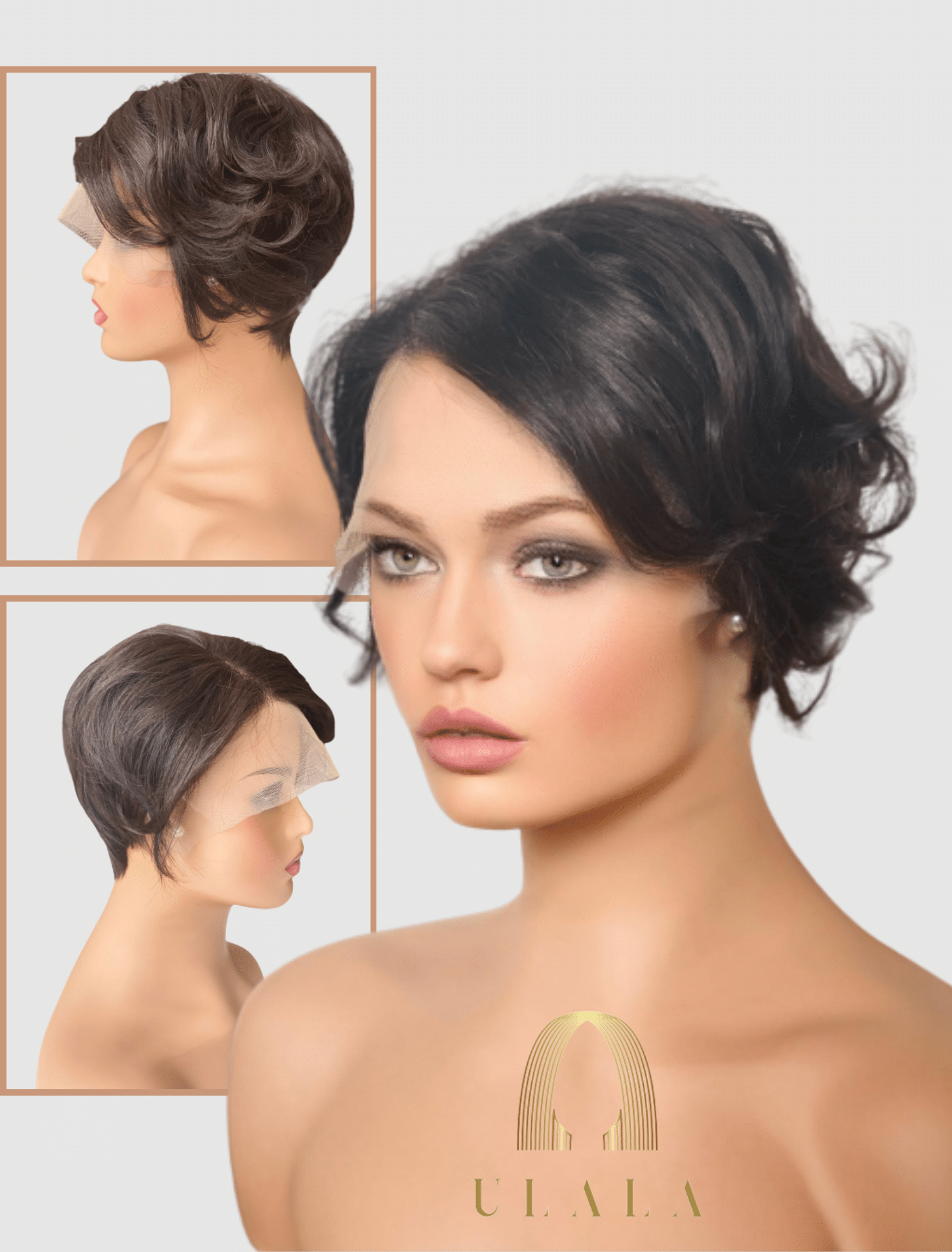 - Választék: Fültől fülig a homlokot elválasztó hajvonal hálós kialakítású (ezért olyan, mintha a hajszálak valóban a fejbőrből nőttek volna ki). Az oldalválaszték mentén szintén hálós kialakítás. A választék nem variálható.